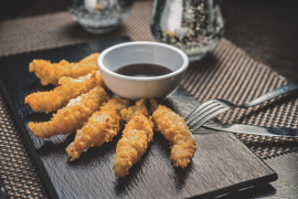 El presente artículo habla sobre la elaboración de carne de pollo al estilo tempura, que surge como una respuesta al modo de vida actual, en donde los consumidores buscan opciones rápidas y sabrosas. La tempura es un tipo de rebozado empleado en alimentos como vegetales, carnes y mariscos. Los rebozados son sistemas de masa líquida diseñados para su aplicación en los alimentos antes de cocerlos mediante la fritura. Dicha mezcla líquida está comúnmente compuesta por leche, suero de leche, agua o cerveza y harinas y/o almidones, sales, condimentos, huevos, gomas y agentes leudantes como levaduras que expanden o inflan al rebozado cuando se fríe. Por lo general, las harinas empleadas en los rebozados son las de trigo por su contenido proteico que fluctúa entre el 10 y 11% y mejora la viscosidad de la masa y brinda una textura crujiente. La viscosidad de la masa es importante porque confiere un espesor crujiente en la capa y se extiende de manera uniforme y, por ende, se adhiere adecuadamente a la pieza de pollo. Este recubrimiento exterior mejora las características organolépticas de los productos de carne de pollo, porque actúa como barrera contra la pérdida de humedad y retiene la jugosidad de la carne, asegurando así un producto final suave y jugoso por dentro, y crujiente por fuera. Etapas de elaboración Las máquinas formadoras son una buena opción si se desea elaborar carne de pollo tempura en trozos pequeños similares a los nuggets. Los productos formados posteriormente se cubren con trozos de piel de pollo de manera manual, ya que las máquinas formadoras automáticas no logran hacer esta operación. Si se emplean piezas completas como músculos enteros de pollo o filetes, el proceso de formación consistirá en cortar la carne con la forma y el peso deseados. Dicho corte se puede realizar manualmente o de manera automática con equipo provisto de cuchillos y guiados por un sistema de análisis de imágenes, o una combinación de equipo manual y semiautomático, tal como cortar piezas de músculo entero de pollo con la ayuda de un molde y cortadas por una máquina.  Si se decide emplear piezas extremadamente pequeñas de pollo, o bien carne molida o emulsiones de pollo, se pueden emplear máquinas formadoras ya sean de placas o de baja presión para formar piezas de carne con tamaños y pesos uniformes. La formadora de placas se basa en el principio de llenar las cavidades de forma predeterminada con la masa, seguido por el troquelado de las piezas formadas. El formador de baja presión - que es una máquina más moderna - se rige bajo un sistema de baja presión para remover las pepitas o piezas pequeñas de los moldes.  La siguiente etapa del proceso es la de pre-polvo o pre-enharinado, donde se recubren las piezas de pollo con harina y luego se pasan por un proceso térmico. En esta etapa, las piezas de pollo son introducidas en un horno y son cocidas uniformemente con el vapor generado.  El paso siguiente es el de rebozar las piezas de pollo. Existen dos tipos de sistemas de rebozados que son: de interfaz o de adhesión y de hojaldre o tempura (Loewe, 1990). La tempura es un rebozado de hojaldre y consiste en una mezcla hecha con base de harinas de trigo y de maíz, agentes leudantes e ingredientes cítricos; se les puede agregar otras harinas, almidones, gomas, colorantes y saborizantes para mejorar la calidad del producto. Después de preparar esta mezcla homogénea, el pollo se reboza para que se adhiera a él antes y después de la coagulación. Una vez que la masa coagula, ésta deberá resistir bajas temperaturas (usualmente a bajo cero) sin sufrir daños en la textura - que no se agriete o se rompa - para que cuando se fría quede una corteza exterior crujiente.  El freído empleado es uno profundo en el que el pollo se sumerge completamente en aceite después de pasar por un recubrimiento húmedo a temperaturas que oscilan entre 175 y 1900°C. La medida del aceite se determina de la siguiente manera: mitad aceite por peso completo del alimento. Conforme la carne de pollo entra en contacto con el aceite caliente, la humedad se evapora, formando una corteza exterior crujiente que retiene el sabor y la jugosidad propios de estos productos (Mohamed, Abdullah y Muthu, 1989). Envasado y refrigeración La etapa final la lleva a cabo el consumidor, quien a su vez los fríe antes de su consumo. Por lo general, se opta por una congelación criogénica que es rápido y causa un daño mínimo a los tejidos circundantes, dado que produce cristales de hielo diminutos. Durante la fritura, se elimina parte de la humedad y se absorbe más grasa en los agujeros que dejan los cristales de hielo. Los grandes cristales de hielo son reemplazados por más grasa; por lo tanto, las piezas de pollo congeladas criogénicamente tienen una mejor textura y mejores cualidades organolépticas con un contenido de grasa más bajo (Kock, 1995). Posteriormente, éstos se envasan para alargar su vida de anaquel y conservar sus propiedades sensoriales. El tipo de envase es la decisión del procesador, quien elige, por mencionar algunos, aquellas que son al vacío o con películas y/o laminados de plástico. Ingredientes para el pollo en tempura  Las mezclas de tempura están hechas a base de 50% a 60% de harina de trigo, 22% a 28% de harina de maíz, 5% a 10% de almidón modificado o dextrina, 2% a 4% de sal, 1% a 3% de dextrosa, y 0,8% a 14% de polvo para hornear. Estos ingredientes tienen una gran influencia sobre variables que incluyen la elasticidad, expansión lineal, absorción de aceite y textura crujiente de la masa (Mohamed, Abdullah y Muthu, 1989). Las harinas y los almidones proporcionan una variedad de funcionalidades en rebozados, por lo que aportan al control de la viscosidad y la humedad y adhesión de la masa y textura crujiente al freír. Como se mencionó anteriormente, un rebozado se basa típicamente en harina de trigo, lo que determina sus características fundame